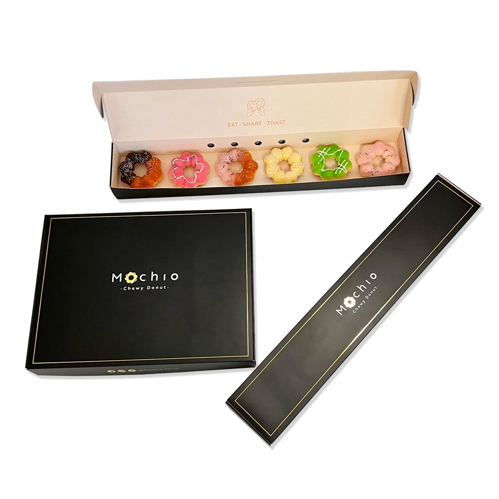2025 venta al por mayor de papel biodegradable personalizado dulce pastelería postre galletas embalaje lujo negro Mochi Donut caja con logotipo